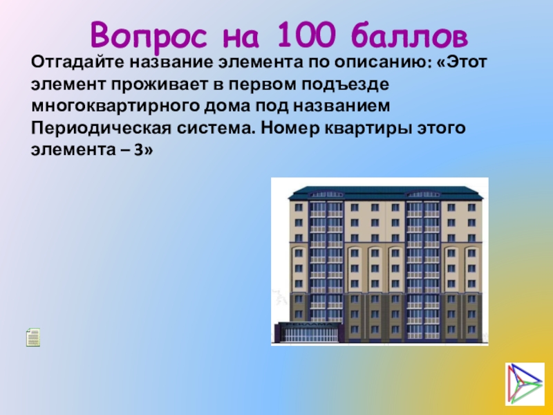 Слайд 16Вопрос на 100 баллов