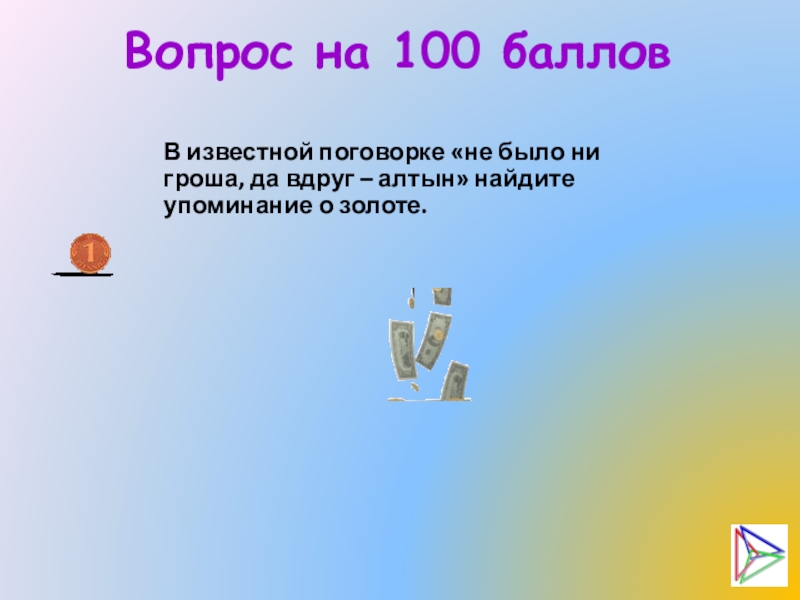 Слайд 27Вопрос на 100 баллов