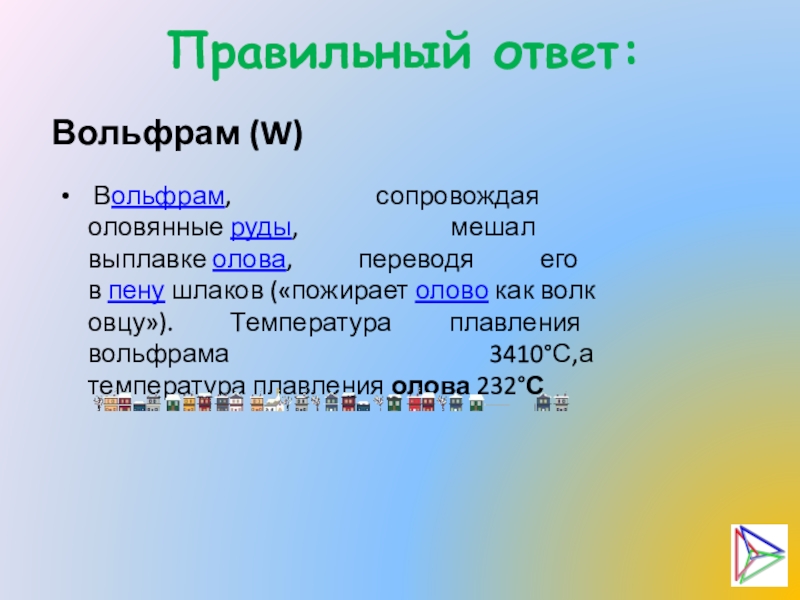 волк овцу»). Температура плавления вольфрама 3410°С,а температура плавления олова 232°С