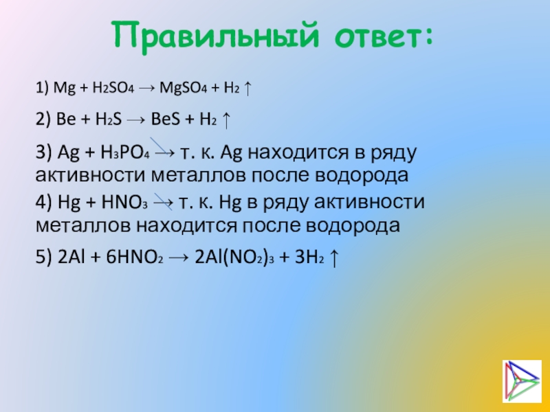 4) Hg + HNO3 → т. к. Hg в ряду активности металлов находится после водорода