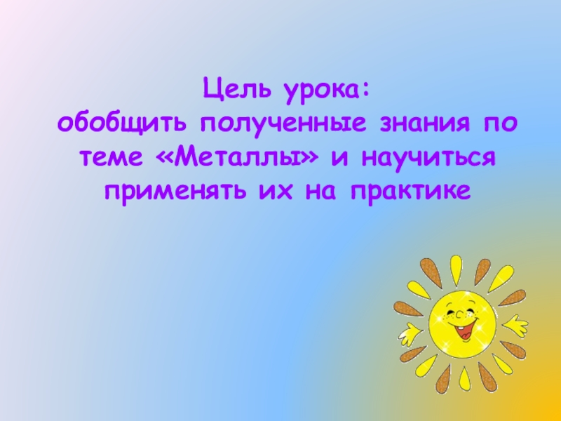 обобщить полученные знания по теме «Металлы» и научиться применять