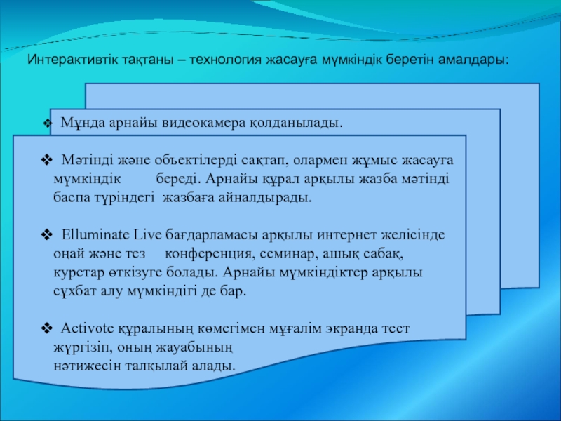 Интерактивтік тақтаны – технология жасауға мүмкіндік беретін амалдары: