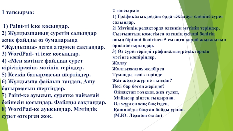 1) Графикалық редакторда «Жалау» өлеңіне сурет салыңдар.