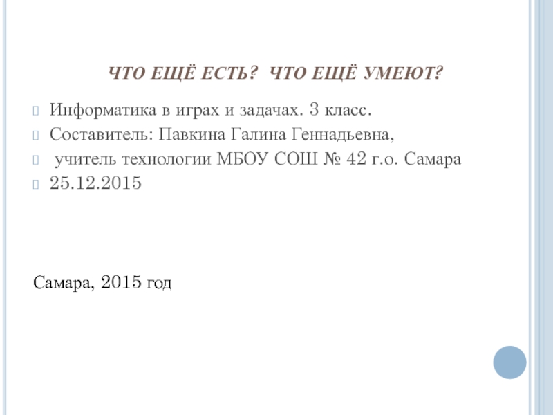 ЧТО ЕЩЁ ЕСТЬ? ЧТО ЕЩЁ УМЕЮТ?