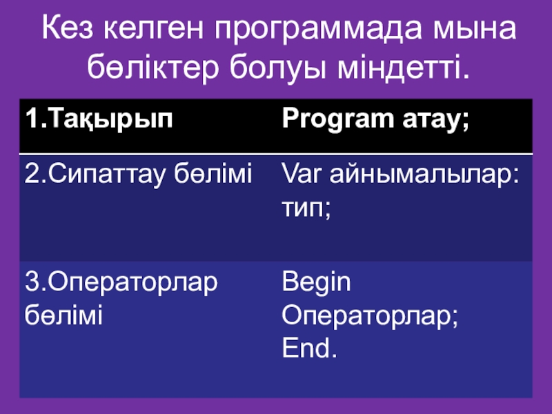 Слайд 17Бүтін типке қолданылатын амалдарды тап.