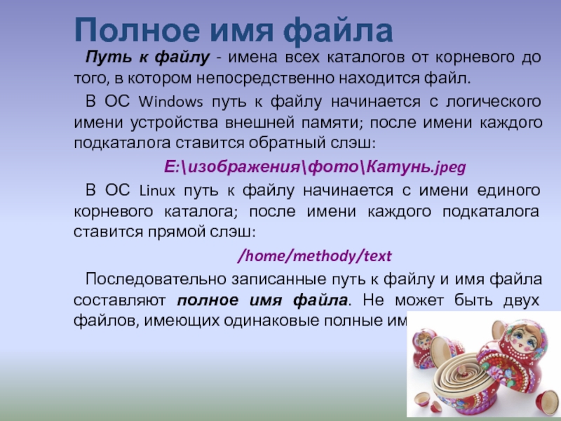 Полный путь к файлу имеет вид: C:\Физика\Экзамен.
