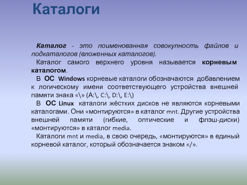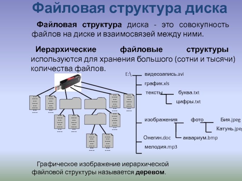 Иерархические файловые структуры используются для хранения большого (сотни и тысячи) количества файлов.