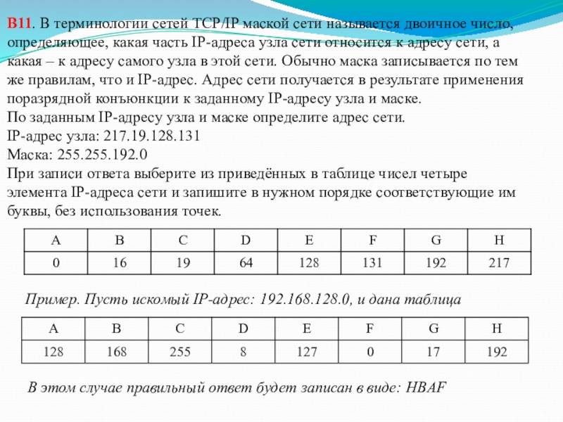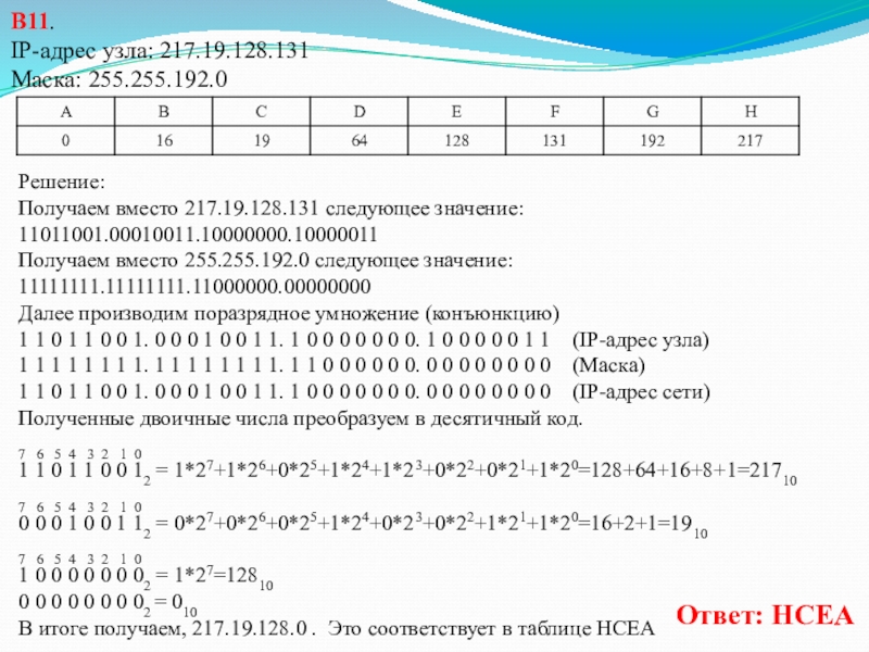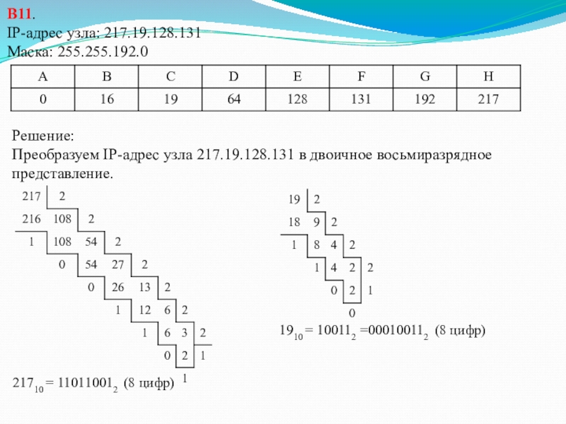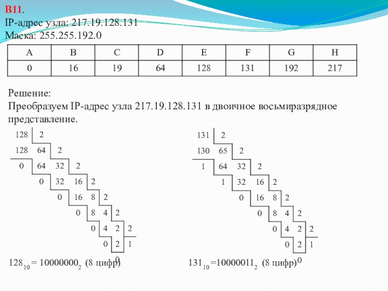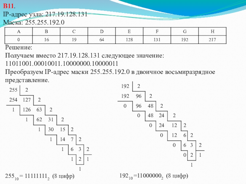 Пример. Пусть искомый IP-адрес: 192.168.128.0, и дана таблица