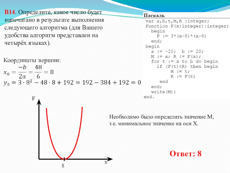 Решение: F = 3*(x-8)*(x-8) = 3*(x-8)2 = 3*(x2-16x+64) = 3x2-48x+192