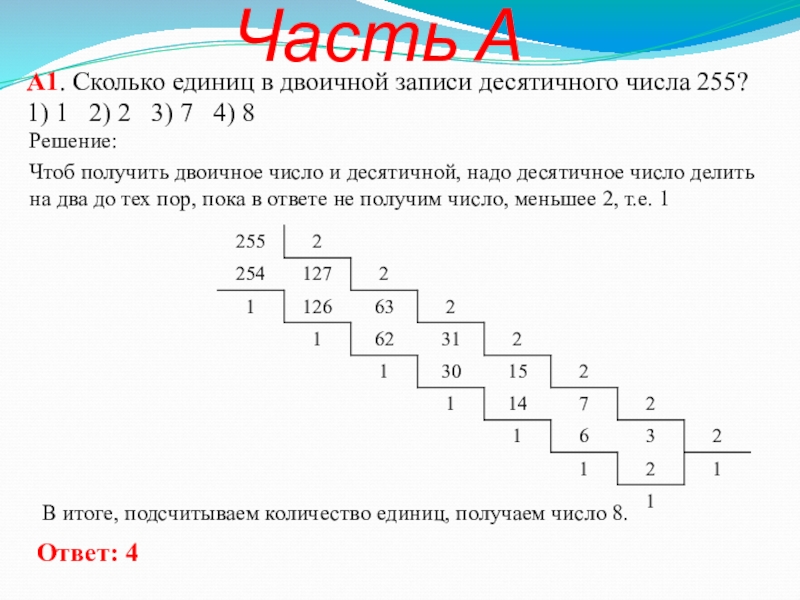 В итоге, подсчитываем количество единиц, получаем число 8.
