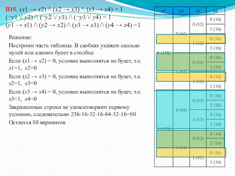 Закрашенные строки не удовлетворяют первому условию, следовательно 256-16-32-16-64-32-16=80