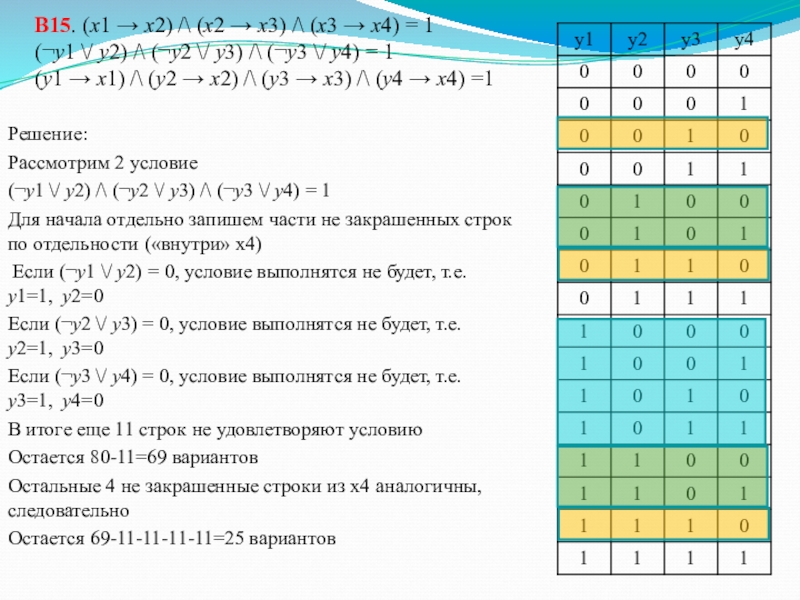 Вторую, третью, четвертую и пятую не закрашенную строку из х4 рассматривать не будем, т.к. там x4=1