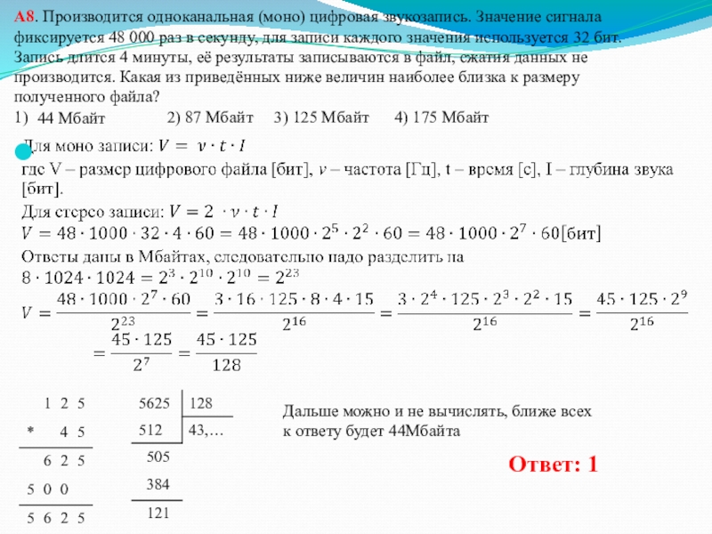 Дальше можно и не вычислять, ближе всех к ответу будет 44Мбайта