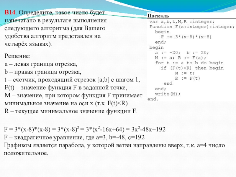 F – квадратичное уравнение, где a=3, b=-48, c=192