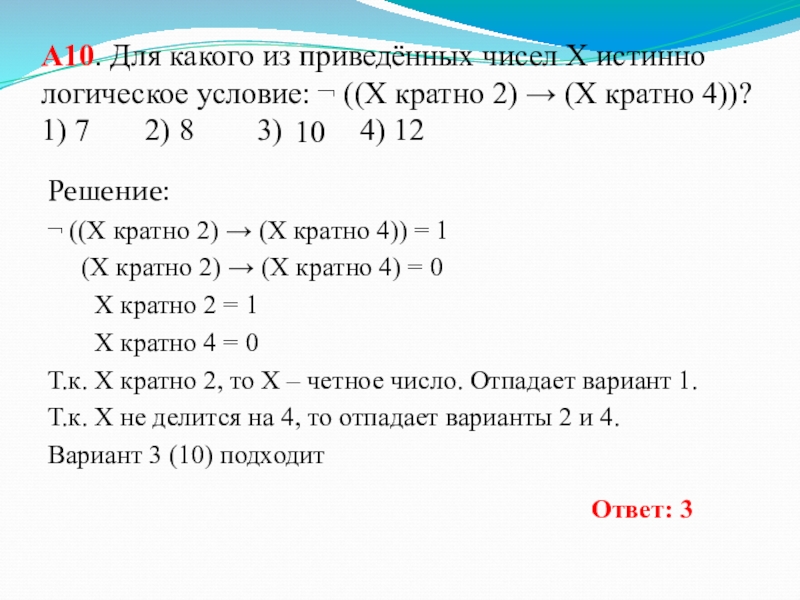 ¬ ((X кратно 2) → (X кратно 4)) = 1