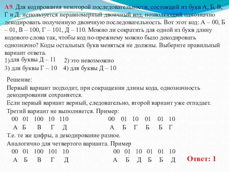 Первый вариант подходит, при сокращении длины кода, однозначность декодирования сохраняется.