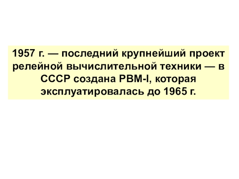Слайд 231957 г. — последний крупнейший проект релейной вычислительной техники — в