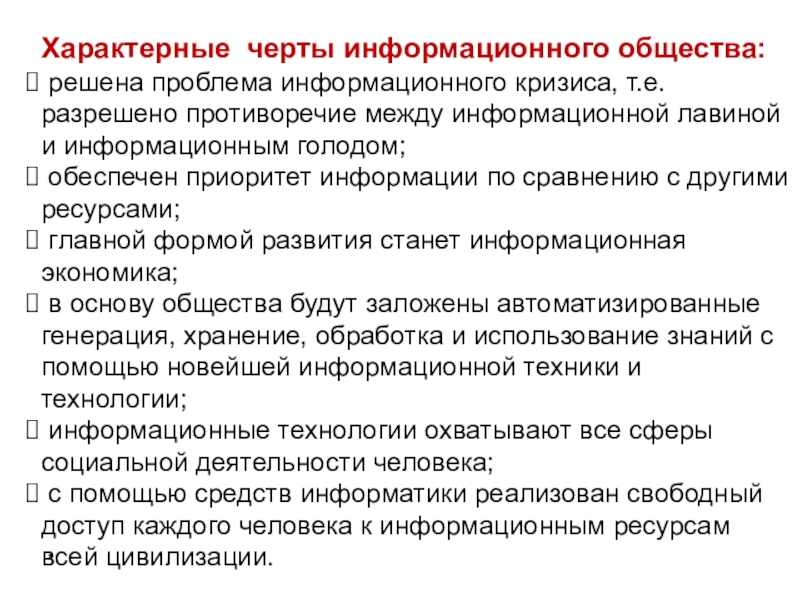 в основу общества будут заложены автоматизированные генерация, хранение, обработка и использование знаний с помощью новейшей информационной техники и технологии;