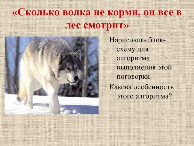 Слайд 11«Сколько волка не корми, он все в лес смотрит»