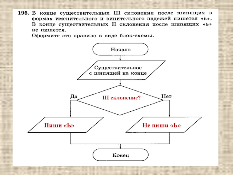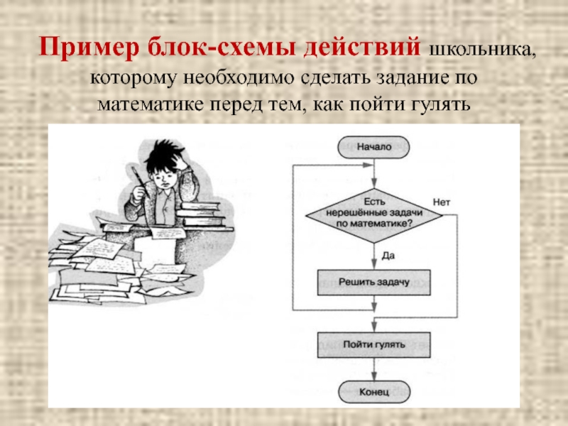 Слайд 8 Пример блок-схемы действий школьника, которому необходимо сделать задание по математике перед