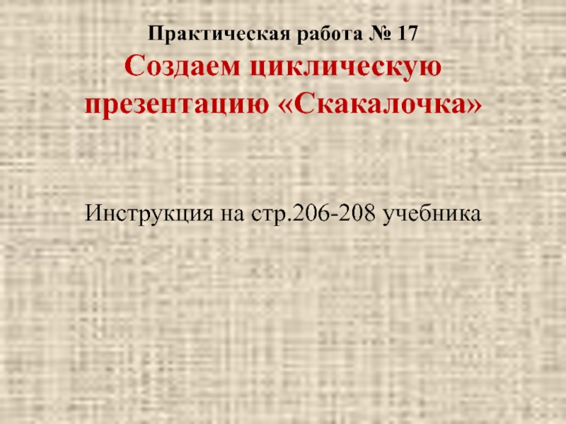 Слайд 12Практическая работа № 17 Создаем циклическую презентацию «Скакалочка»