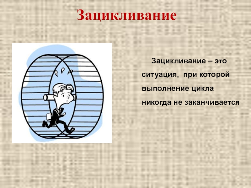 ЗацикливаниеЗацикливание – это ситуация, при которой выполнение цикла никогда не заканчивается