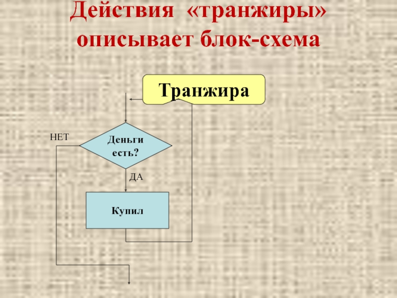 Деньги есть?КупилДАНЕТТранжира Действия «транжиры» описывает блок-схема