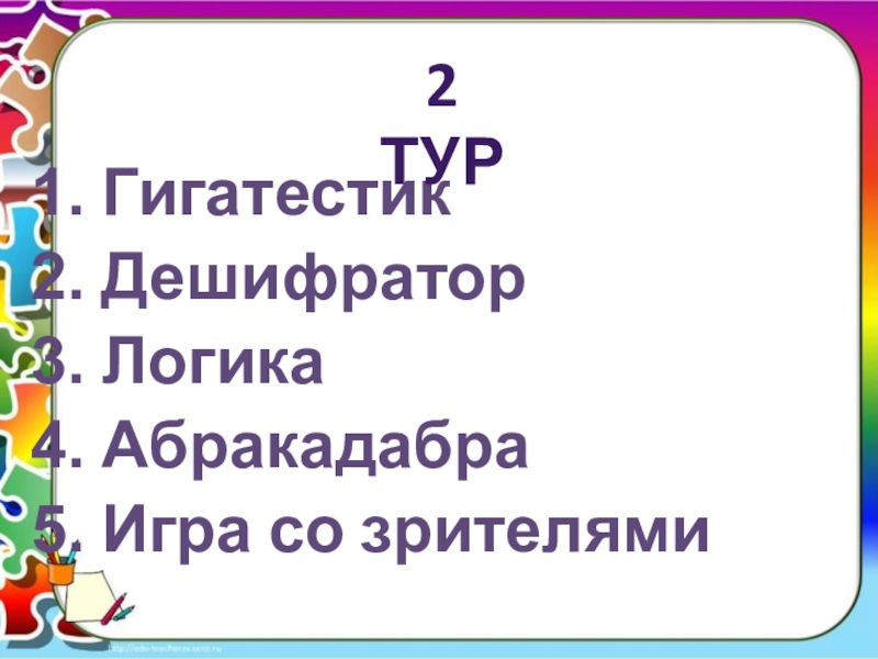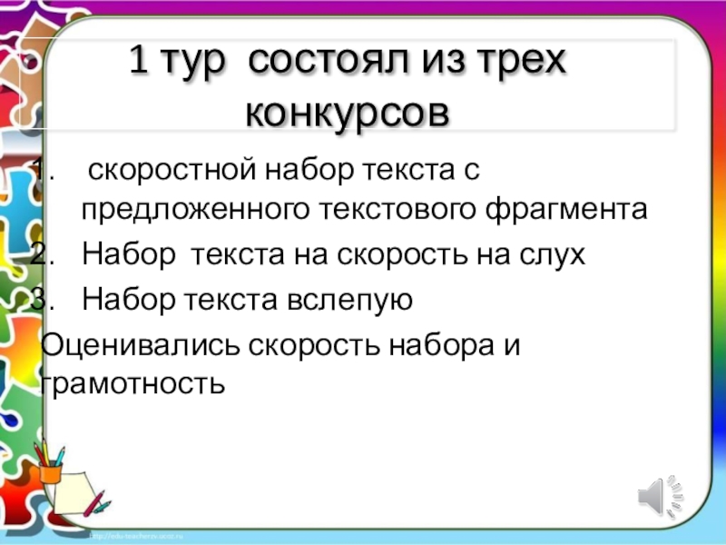 Слайд 101 тур состоял из трех конкурсов