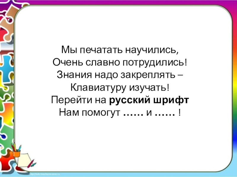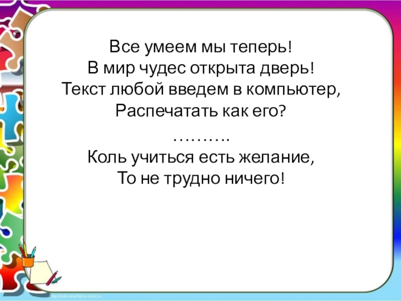 Слайд 16Мы печатать научились,