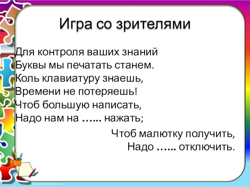 Слайд 15Игра со зрителями