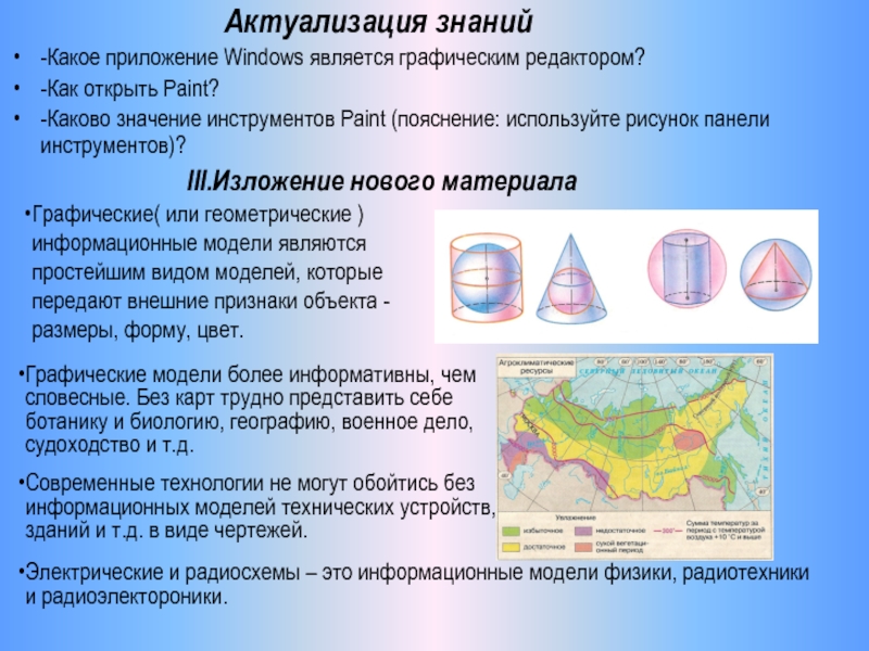 Графические модели более информативны, чем словесные. Без карт трудно представить себе ботанику и биологию, географию, военное дело, судоходство и т.д.