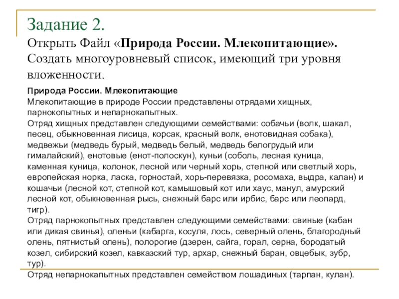 Млекопитающие в природе России представлены отрядами хищных, парнокопытных и непарнокапытных.