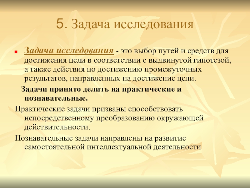 Исследовательская работа - особый вид деятельности, направленная на получение и применение новых знаний. Основу исследовательской деятельности составляют действия, направленных на решение проблемных задач и ситуаций .
