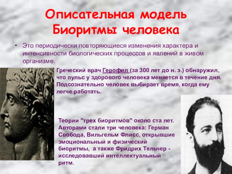 Теории "трех биоритмов" около ста лет. Авторами стали три человека: Герман Свобода, Вильгельм Флисс, открывшие эмоциональный и физический биоритмы, а также Фридрих Тельчер - исследовавший интеллектуальный ритм.