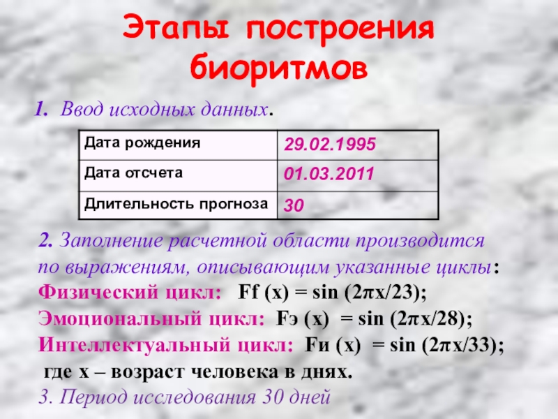 Венский психолог Свобода обратил внимание, что мысли, идеи и импульсы его пациентов повторяются с определенной периодичностью. Он проследил ее и пришел к выводу: ритмичность физического цикла составляет 23 дня, а психический цикл длится 28 дней.