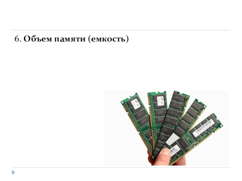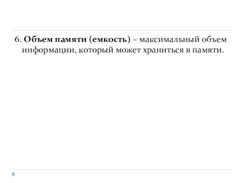 6. Объем памяти (емкость) – максимальный объем информации, который может храниться в памяти.