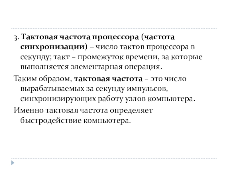 Слайд 63. Тактовая частота процессора (частота синхронизации)