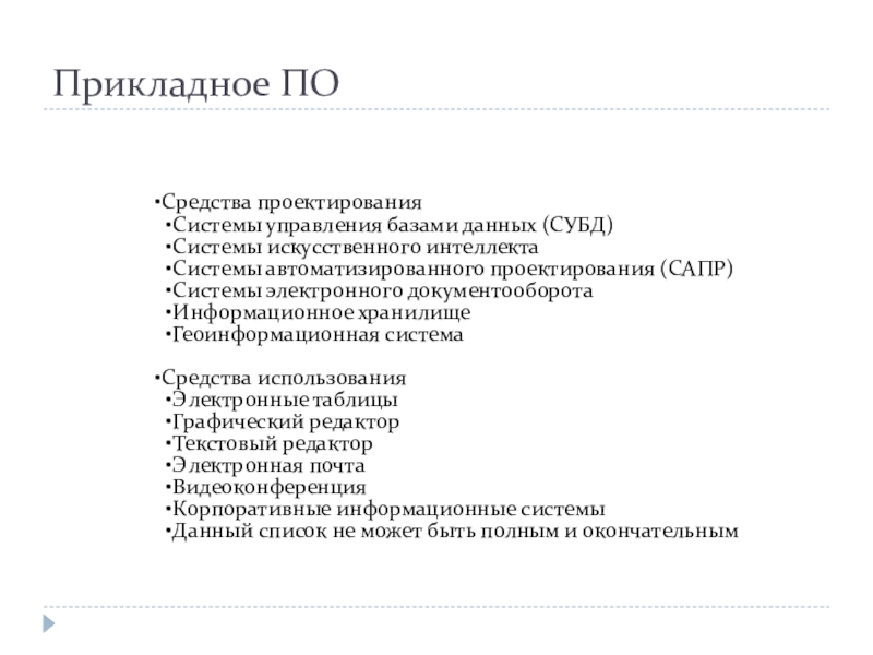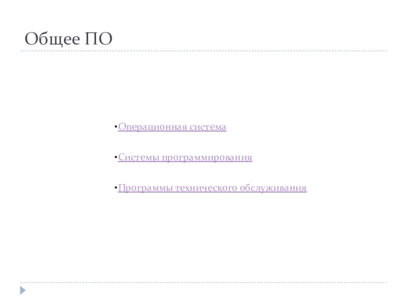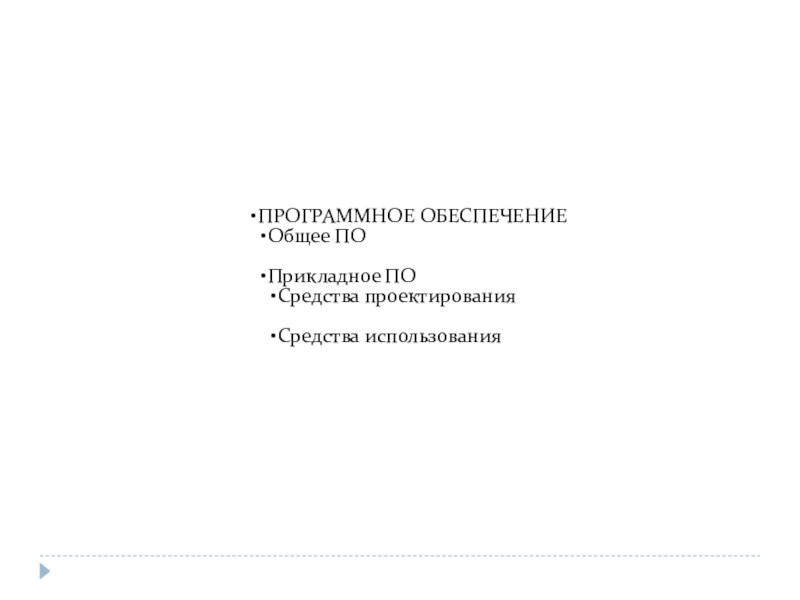 вычислительной системы; подразделяется на общее и прикладное программное обеспечение.
