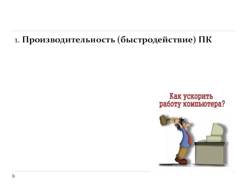 Слайд 31. Производительность (быстродействие) ПК – возможность компьютера обрабатывать большие объемы информации.