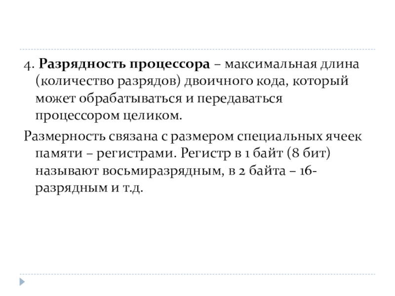 Слайд 94. Разрядность процессора – максимальная длина (количество разрядов) двоичного кода, который