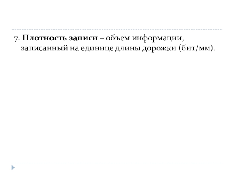 7. Плотность записи – объем информации, записанный на единице длины дорожки (бит/мм).