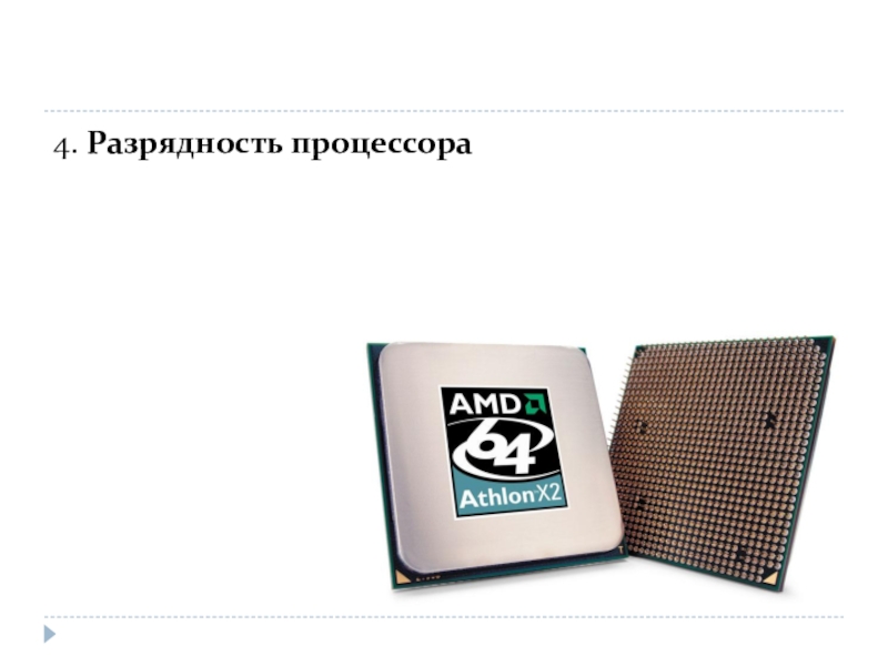 4. Разрядность процессора – максимальная длина (количество разрядов) двоичного кода, который может обрабатываться и передаваться процессором целиком.Размерность