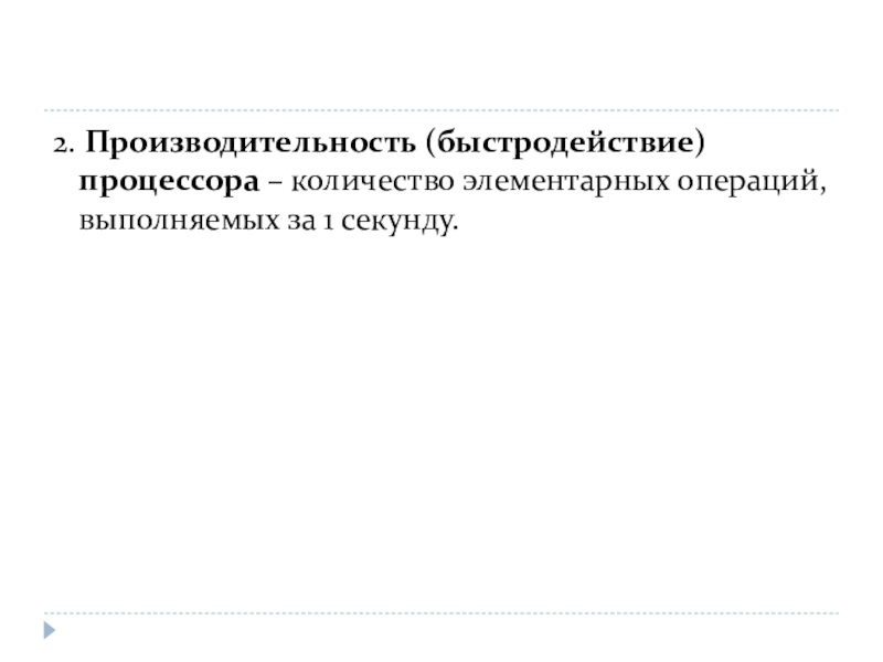 2. Производительность (быстродействие) процессора – количество элементарных операций, выполняемых за 1 секунду.