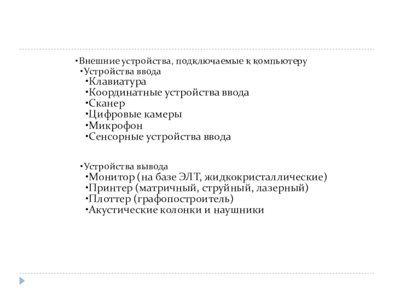 ВНЕШНИЕ УСТРОЙСТВА, ПОДКЛЮЧАЕМЫЕ К КОМПЬЮТЕРУ