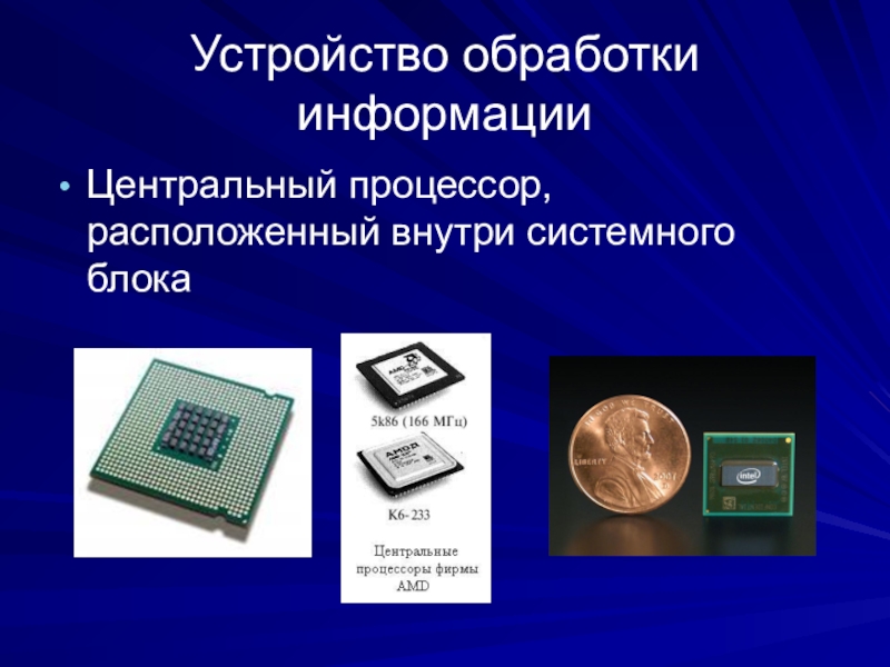Устройство обработки информацииЦентральный процессор, расположенный внутри системного блока