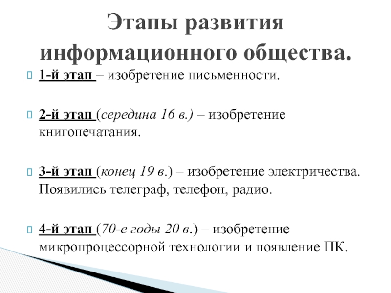 Этапы развития информационного общества.