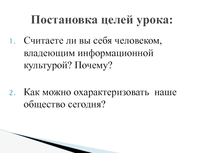 Постановка целей урока: