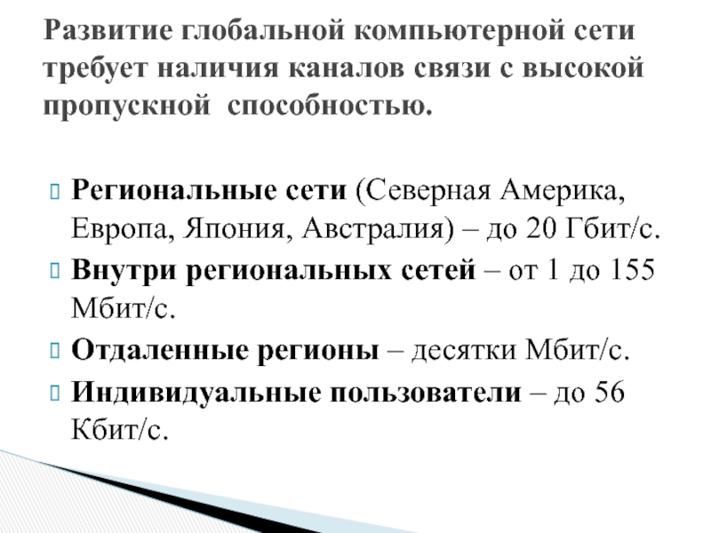 Развитие глобальной компьютерной сети требует наличия каналов связи с высокой пропускной способностью.