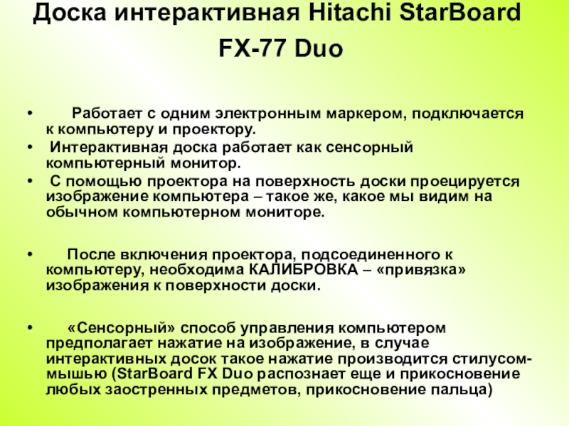Слайд 4Доска интерактивная Hitachi StarBoard FX-77 Duo