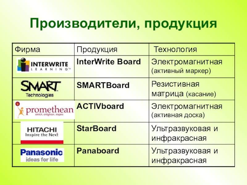 состоит из двух слоев тончайших проводников, которые реагируют на прикосновение к поверхности экрана. Такие доски очень подходят для школ: они надежны и не требуют каких-либо специальных приспособлений, которые могут потеряться или сломаться.